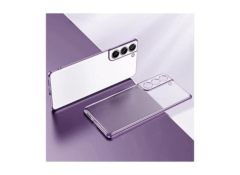 Capa de telefone folheada a ouro para Samsung Galaxy S21 Ultra S20 Plus S22 S 21 20 5g Câmera Proteger Capa de Silicone Transparente, Roxo, Para S21 Ultra