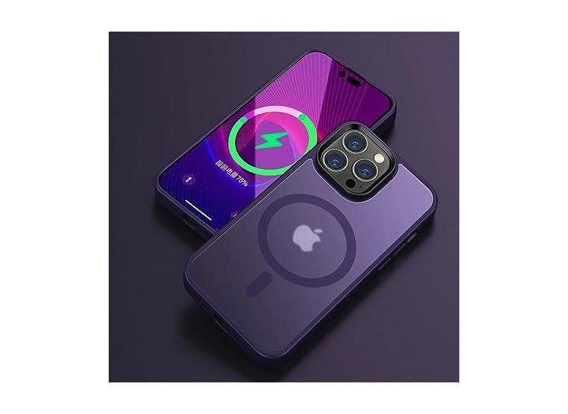Capa de telefone fosca translúcida fosca para iPhone 15 Pro Max 14 13 12 11 Pro Max 15 Plus Capa magnética de carregamento sem fio, roxo escuro, para iPhone 13 Pro