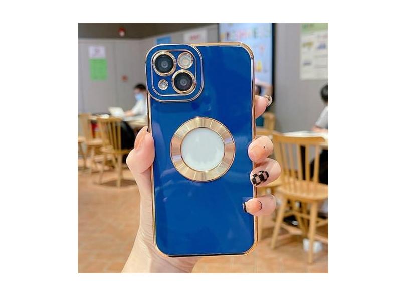 Capa de telefone galvanizada macia de luxo para iPhone 11 12 13 14 15 Pro Max XS X XR 7 8 Plus Mini capa de silicone oca, azul, para iPhone 14Plus