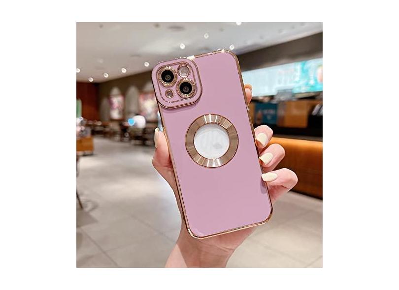 Capa de telefone galvanizada macia de luxo para iPhone 11 12 13 14 Pro Max XS X XR 7 8 Plus Mini Capa de silicone vazada, roxa, para iphone 12 Mini
