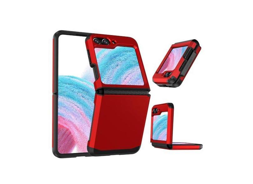 Capa de telefone integrada com dobradiça de armadura galvanizada para Samsung Galaxy Z Flip 5 4 3 Flip5 Flip4 Flip3 5G Capa protetora rígida, vermelha, para Galaxy Z Flip 4