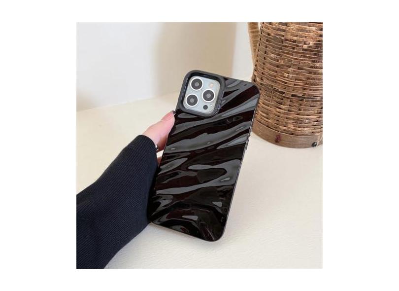 Capa de telefone luxuosa com padrão ondulado de seda 3D para iPhone 14 13 12 11 Pro Max X XR XS Max 7 8 14 Plus Capa brilhante de cor sólida, preta, para iPhone 11