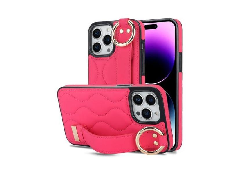 Capa de telefone luxuosa com pulseira de couro para iPhone 11 12 13 14 Pro Max 14Plus para X XS XR XSMax 7 8 Plus Capa de telefone de couro, rosa, para iPhone 11
