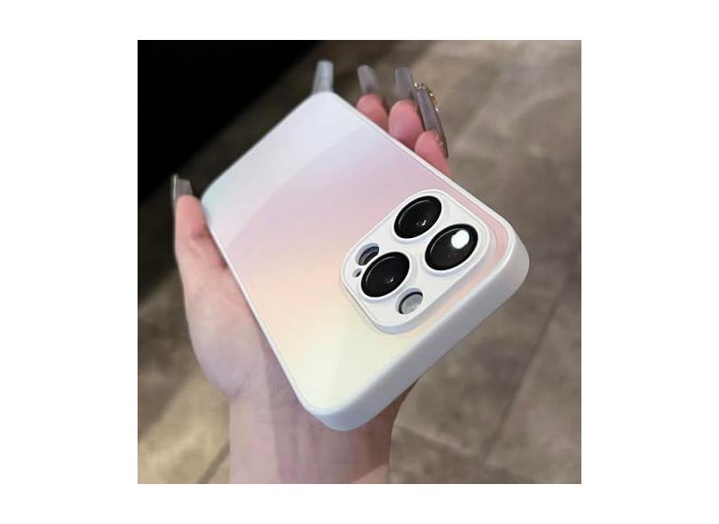 Capa de telefone luxuosa fosca com brilho de cor gradiente para iPhone 15 11 12 13 14 Pro Max capa de proteção de lente de câmera de silicone rígido e macio, branca, para iPhone 13 Pro