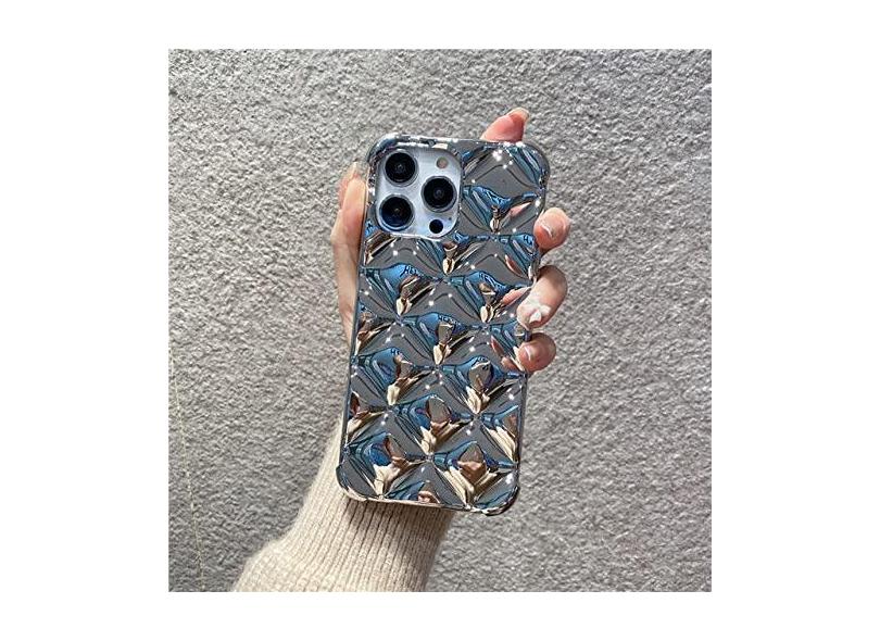 Capa de telefone macia com padrão de rombo galvanizado 3D de luxo para iphone 14 Pro Max 13 11 12 Pro Max 14 Plus capa traseira, prateada, para iPhone 12Pro Max
