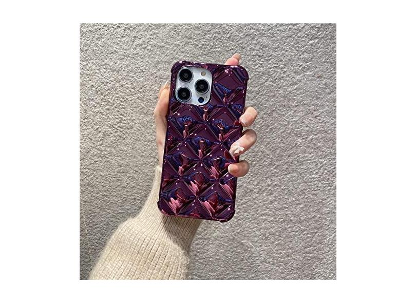 Capa de telefone macia com padrão de rombo galvanizado 3D de luxo para iphone 14 Pro Max 13 11 12 Pro Max 14 Plus capa traseira, roxa, para iPhone 14