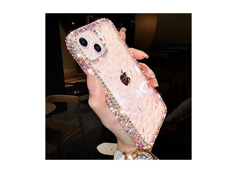 Capa de telefone macia transparente de luxo brilhante brilhante diamante para iphone 13 12 pro max 11 x xs xr 7 8 plus se 3 capa de silicone transparente, rosa, para iphone se 2022