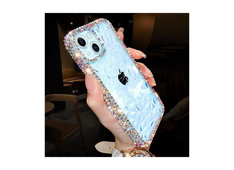 Capa de telefone macia transparente de luxo brilho brilhante diamante para iphone 13 12 pro max 11 x xs xr 7 8 plus se 3 capa de silicone transparente, azul claro, para iphone 11