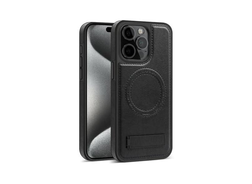 Capa de telefone magnética com suporte invisível de couro para iPhone 11 12 13 14 15 Pro Max 14 15 Plus 15Pro Capa de telefone com suporte, preta, para iPhone 11 ProMax