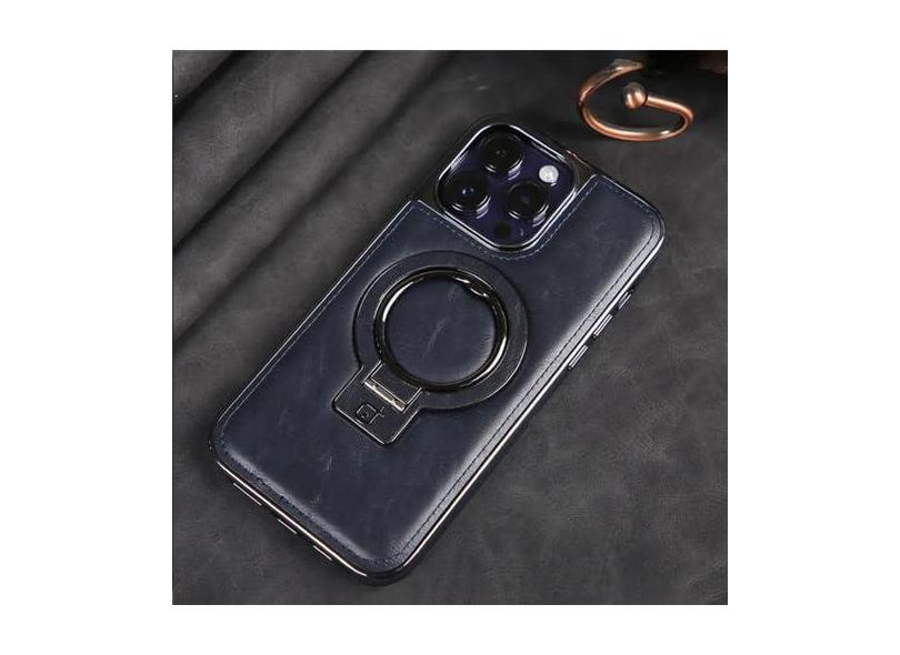 Capa de telefone magnética com suporte invisível de couro PU galvanizado para iPhone 15 14 Plus 13 12 11 Pro Max, azul, para iPhone 13