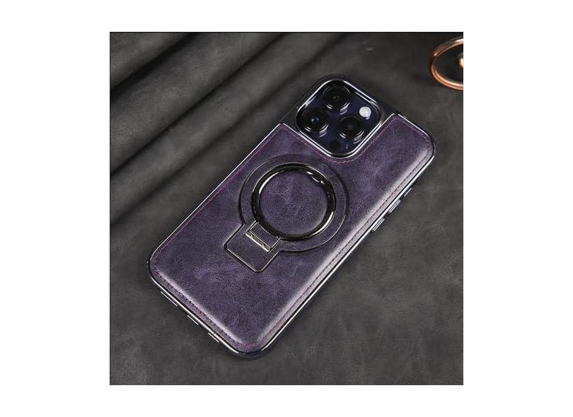 Capa de telefone magnética com suporte invisível de couro PU galvanizado para iPhone 15 14 Plus 13 12 11 Pro Max capa traseira, roxa, para iPhone 14