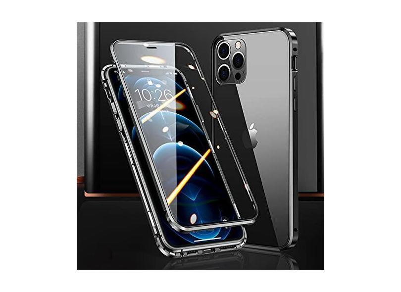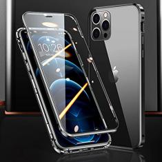 Capa de telefone magnética de vidro dupla face com estrutura de metal para iPhone 15 14 13 12 Pro Max X XS 8 7 14 Plus 13 12Mini Capa de lente de câmera, preta, para iPhone 13 Mini