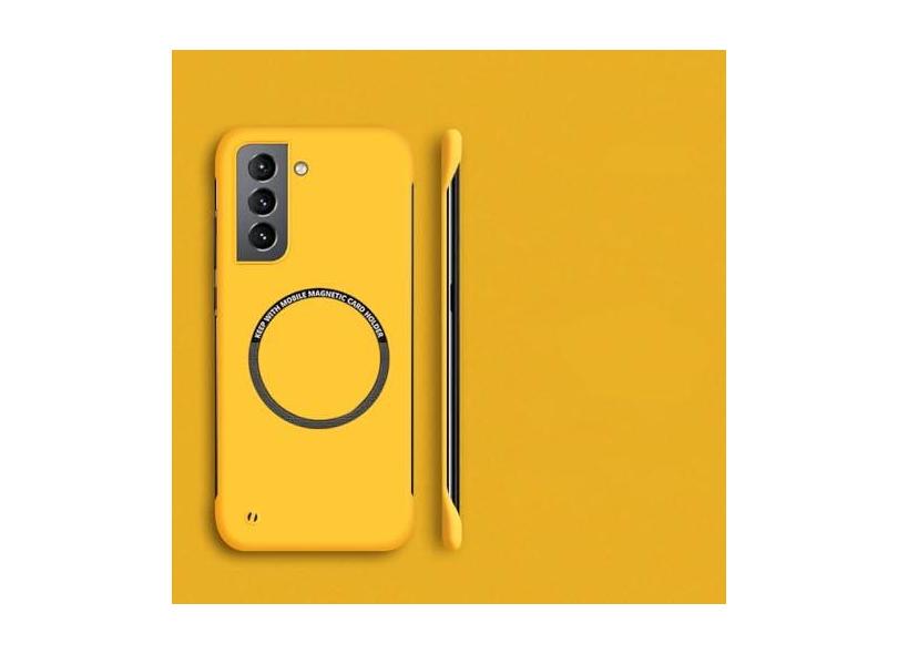 Capa de telefone magnética sem moldura para PC rígido para Samsung Galaxy S23 S22 S21 S20 FE S10 NOTA 20 Ultra 10 Plus Capa fina fosca, amarela, para S22 Ultra
