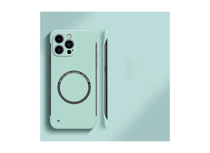 Capa de telefone magnética sem moldura ultrafina e rígida para PC para iPhone 15 14 Pro Max 13 12 Mini 11 Pro Max Capa sólida de cor fosca, hortelã, para iphone 12 Mini