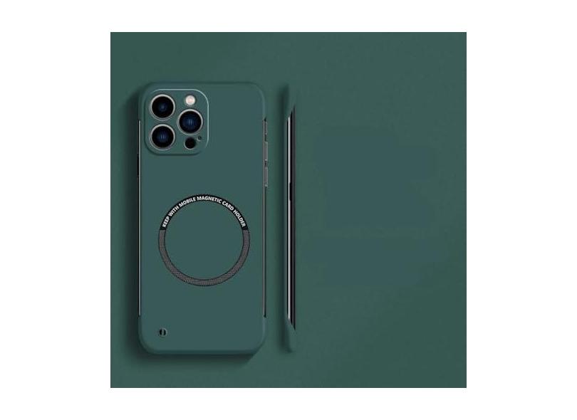 Capa de telefone magnética sem moldura ultrafina e rígida para PC para iPhone 15 14 Pro Max 13 12 Mini 11 Pro Max Capa sólida de cor fosca, verde escuro, para iphone 11