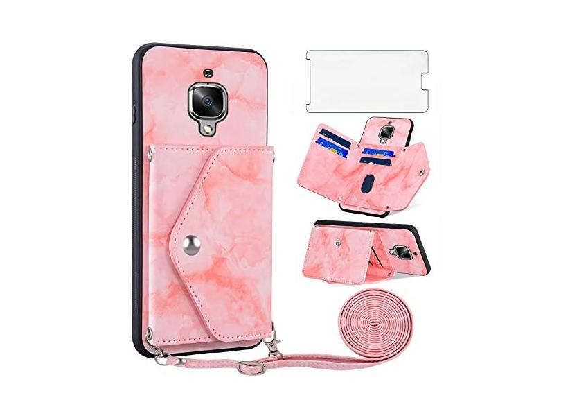Capa de telefone para OnePlus 3 3T A3000 capa carteira com protetor de tela e alça transversal cordão mármore suporte para cartão de crédito celular OnePlus3 OnePlus3T 1 One Plus T 1plus T3 1+ 1+3T