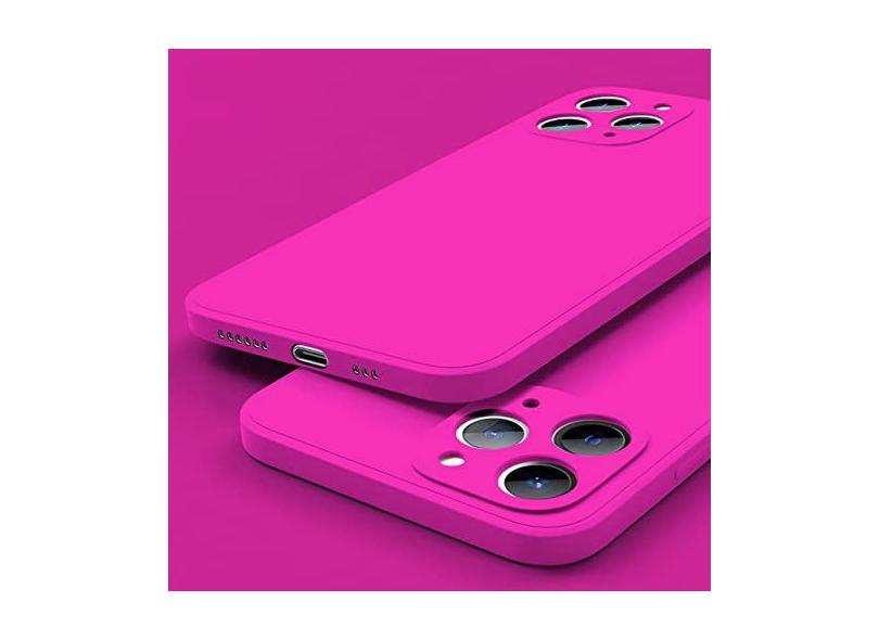 Capa de telefone quadrada de silicone líquido para iPhone 14 12 11 13 Pro Max Mini X XR XS 7 8 Plus SE 2 Capa de proteção de lente completa, rosa fluorescente, para iPhone 13