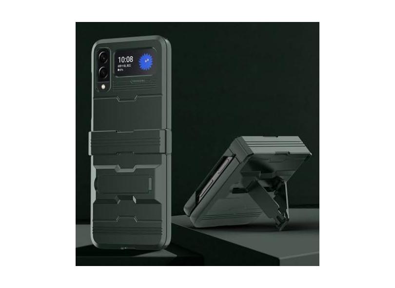 Capa de telefone rígida de PU galvanizada para Samsung Galaxy Z Flip 4 3 Flip4 Flip3 5G Proteção de dobradiça de couro Capa anti-queda, verde, para Galaxy Z Flip 4