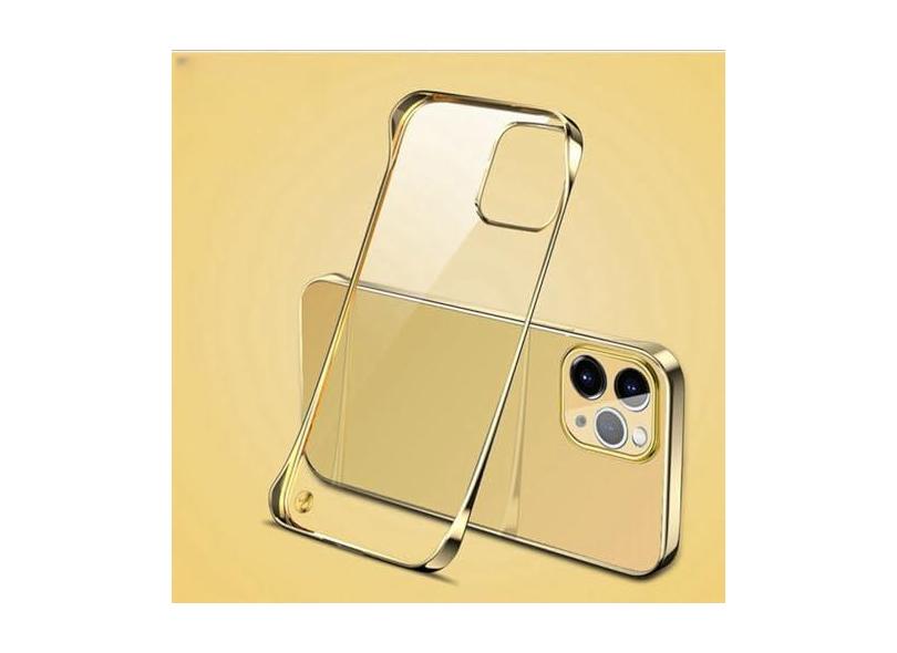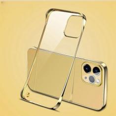Capa de telefone rígida sem moldura para PC revestida para iPhone 11 12 13 14 15Pro Max XSMAX X XR XS 7 8PLUS SE Capa traseira transparente brilhante sem limites, dourada, para iPhone 13