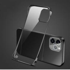 Capa de telefone rígida sem moldura para PC revestida para iPhone 11 12 13 14 15Pro Max XSMAX X XR XS 7 8PLUS SE Capa traseira transparente brilhante sem limites, preta, para iPhone 12Mini