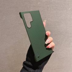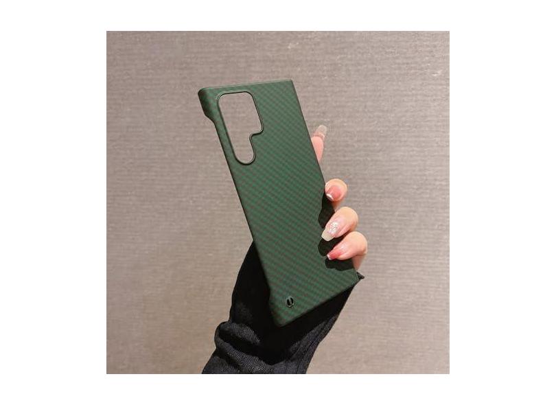 Capa de telefone sem moldura com padrão de fibra de carbono para Samsung Galaxy S23 S22 S21 Ultra Plus Note 20 10 capa traseira fina à prova de choque, verde escuro, para S22
