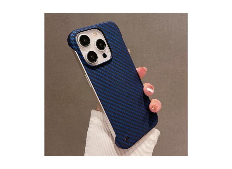 Capa de telefone sem moldura com padrão de fibra de carbono ultrafina para iPhone 15 11 12 13 14 Pro Max Mini XR X XS 7 8 Plus SE Capa dura fina, azul marinho, para iphone 14