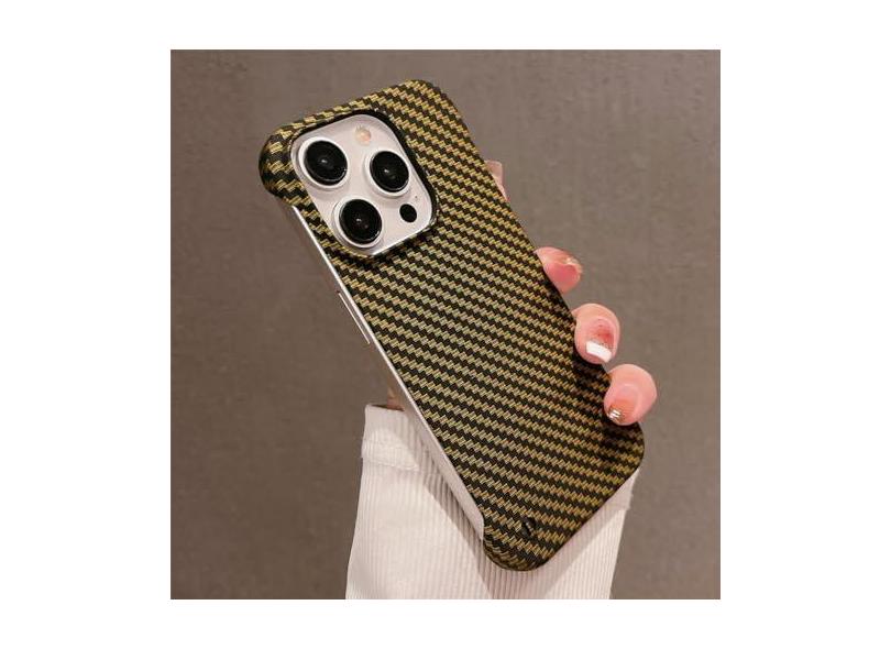 Capa de telefone sem moldura com padrão de fibra de carbono ultrafina para iPhone 15 11 12 13 14 Pro Max Mini XR X XS 7 8 Plus SE Capa dura fina, dourada, para iPhone 14 Plus