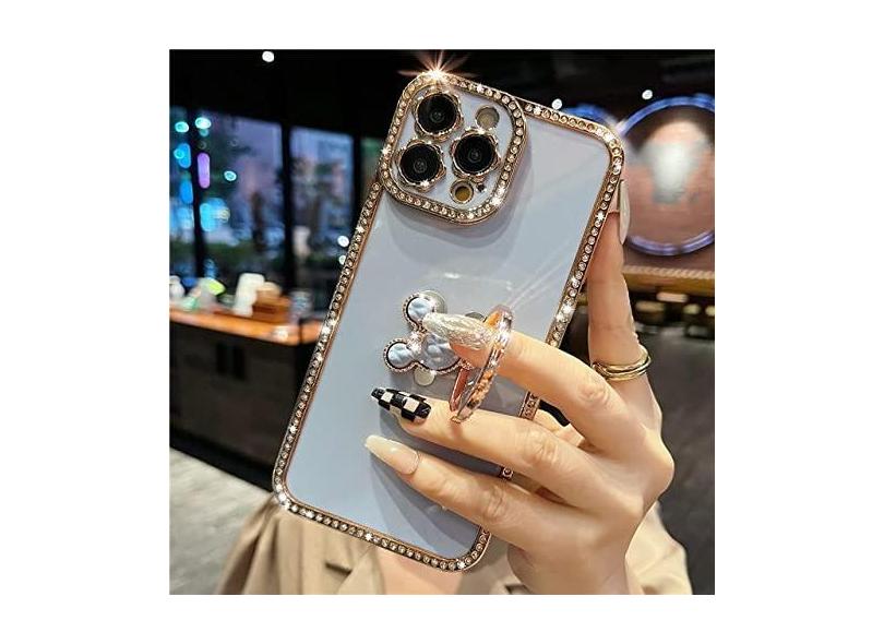 Capa de telefone stander com suporte de cristal 3D para iphone 14 Pro Max Plus 11 13 Pro Max 12 Pro Cover, K17B1, azul, para 14 ProMax