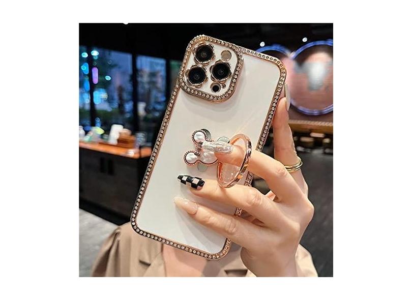 Capa de telefone stander com suporte de cristal 3D para iphone 14 Pro Max Plus 11 13 Pro Max 12 Pro Cover, K17B1, branco, para 12 ProMax