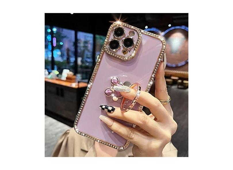 Capa de telefone stander com suporte de cristal 3D para iphone 14 Pro Max Plus 11 13 Pro Max 12 Pro Cover, K17B1, Cherry Purple, para iPhone 11