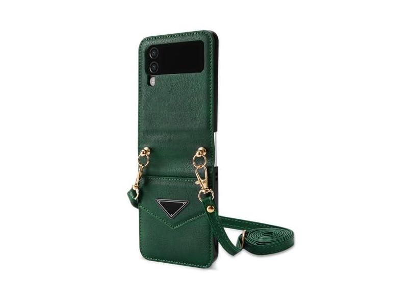 Capa de telefone tipo carteira crossbody para Samsung Galaxy Z Flip 5 4 3 Flip5 Flip4 Flip3 5G com compartimento para cartões de crédito Capa de couro à prova de choque, verde, para Galaxy Z Flip