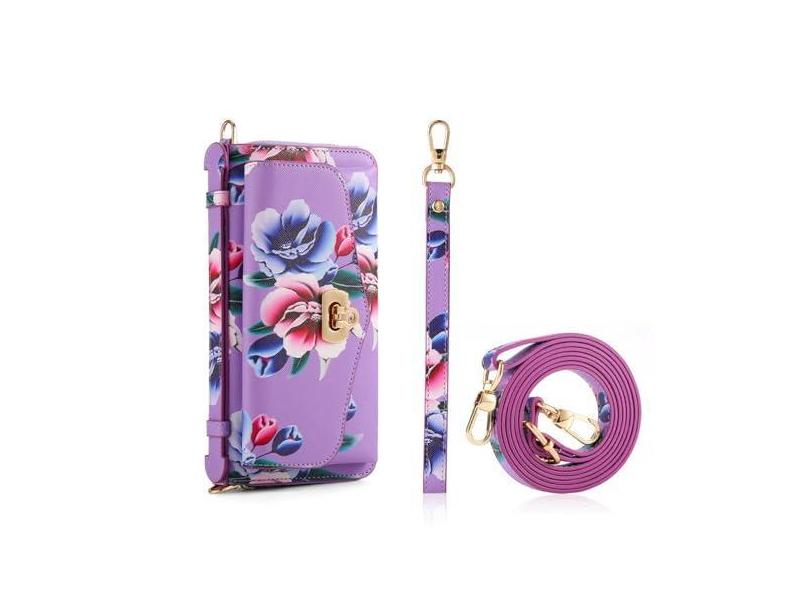 Capa de telefone tipo carteira magnética removível com zíper para Samsung Galaxy S23 S22 Plus Note 20 Ultra cordão com alça de mão capa de couro, roxa, para Galaxy S23