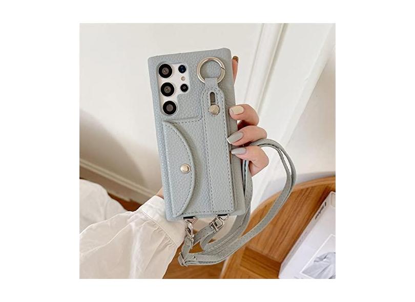 Capa de telefone tiracolo com alça de pulso para Samsung Galaxy S23 S22 S21 S20 Plus Note 20 Ultra titular do cartão carteira cordão capa de couro, azul, para Galaxy S22 Plus