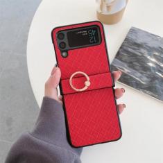 Capa de telefone trançada retrô para samsung galaxy z flip 3 4 5 6 flip5 flip6 5g anel de dedo fivela suporte capa de telefone, vermelho, para galaxy z flip 5