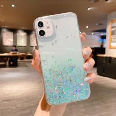 Capa de telefone transparente com glitter para iPhone 14 15 13 12 Pro 11 Pro Max XS Max XR X 7 8 Plus Mini SE 2020 Capa de lantejoulas gradiente fofa, azul celeste, para iPhone 11Pro