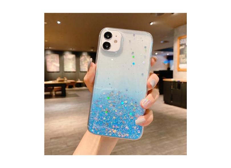 Capa de telefone transparente com glitter para iPhone 14 15 13 12 Pro 11 Pro Max XS Max XR X 7 8 Plus Mini SE 2020 Capa de lantejoulas gradiente fofa, azul, para iPhone 8