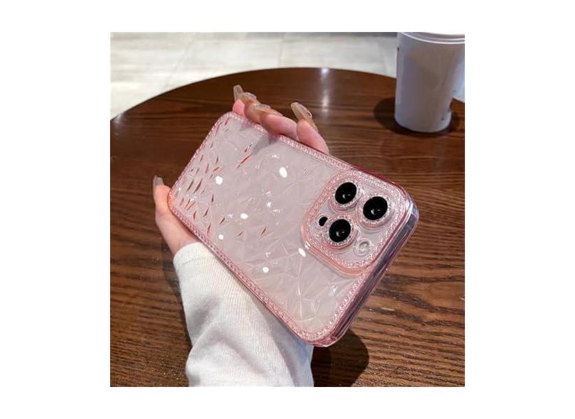 Capa de telefone transparente com padrão de diamante para iPhone 14 13 12 11 Pro Max X XR XS Max 14 Pro com lente brilhante capa traseira macia, T2, para iPhone 14 Plus