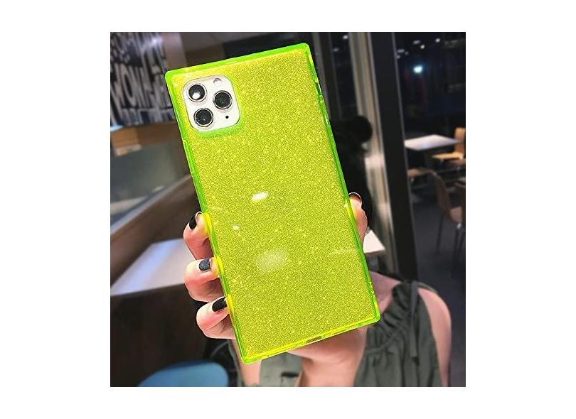 Capa de telefone transparente de cor fluorescente quadrada para iPhone 15 Pro Max 14 13 12 11 X XS XR 7 8 Plus SE Capa de silicone macia transparente, brilho amarelo, para iPhone 14