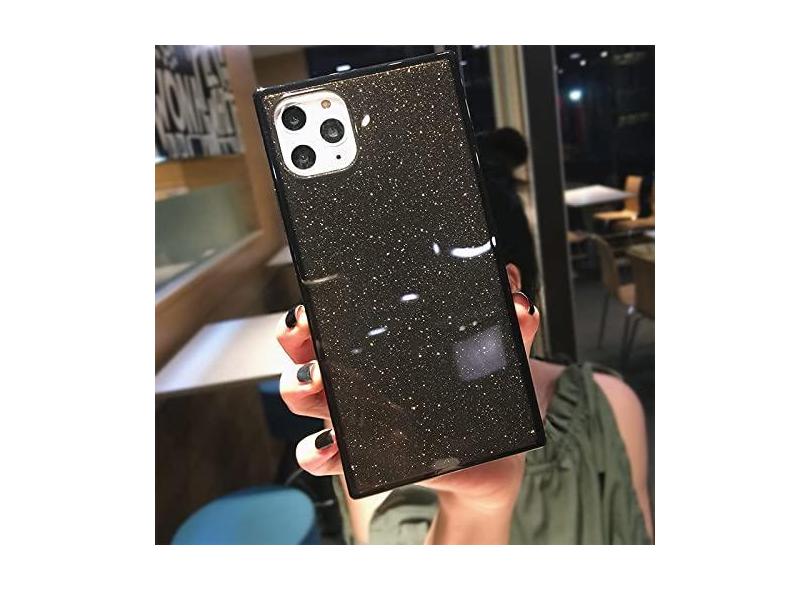 Capa de telefone transparente de cor fluorescente quadrada para iPhone 15 Pro Max 14 13 12 11 X XS XR 7 8 Plus SE Capa de silicone macia transparente, glitter preto, para iPhone 14 Pro