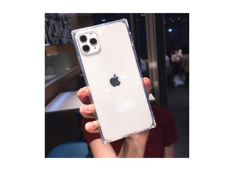 Capa de telefone transparente de cor fluorescente quadrada para iPhone 15 Pro Max 14 13 12 11 X XS XR 7 8 Plus SE Capa de silicone macia transparente, transparente, para iPhone 12
