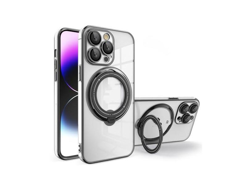 Capa de telefone transparente magnética com anel de chapeamento para iPhone 15 14 Pro Max 13 12 11 XR XS X 7 8 Plus Capa de carregamento sem fio, preta, para iPhone 11 Pro