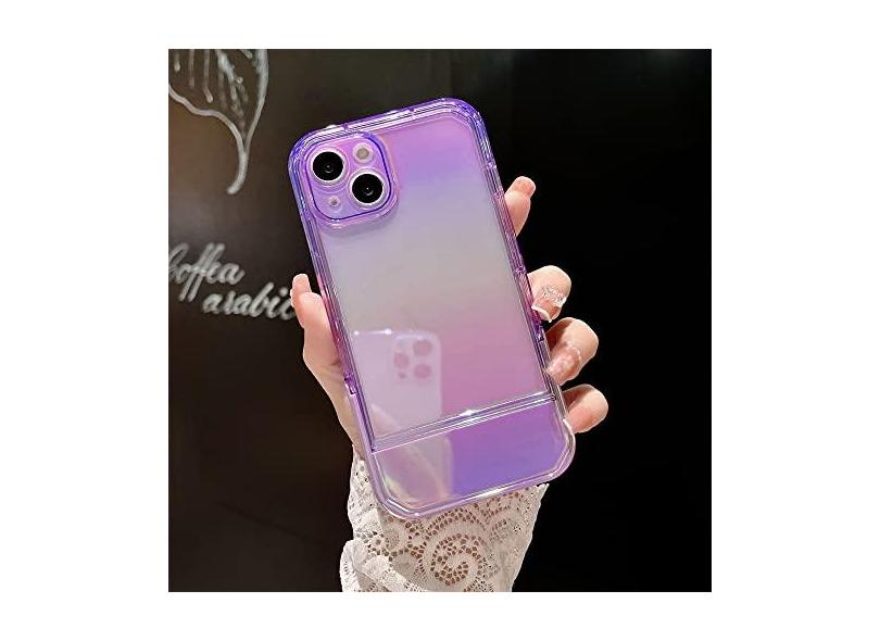 Capa de telefone transparente para suporte de cadeira colorida a laser de luxo para iPhone 11 12 13 Pro X XR XS MAX Capa traseira protetora elegante, roxa, para iPhone 11 Pro