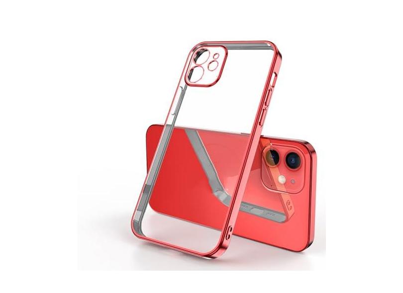 Capa de telefone transparente quadrada luxuosa de silicone para iPhone 11 12 13 Pro Mini Xs Max X Xr Se 2020 7 8 Plus Capa macia revestida, vermelha, para iPhone 12 Pro