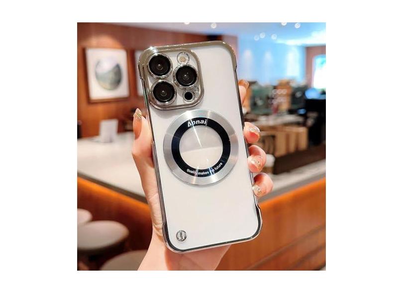 Capa de telefone ultrafina magnética sem moldura revestida para iPhone 14 Pro Max 13 12 Pro Max Buraco transparente para PC rígido, prata, para iPhone 14Pro Max
