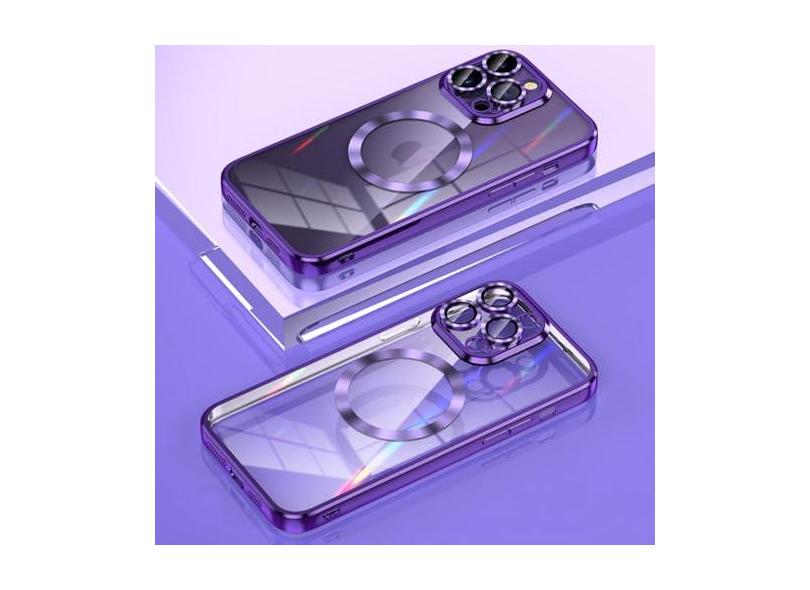 Capa de TPU macia com revestimento magnético de carga sem fio para iPhone 14 Plus 13 12 11 Pro Max Capa de filme de vidro de proteção de lente, roxa, para iPhone 14Pro Max
