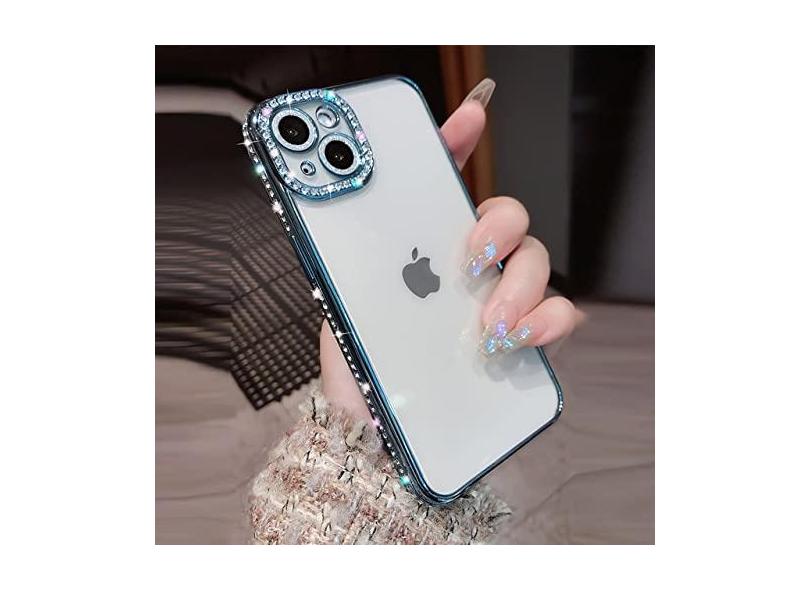 Capa Diamond para iPhone 13 Pro Max 12 11 Pro Xs Max Xr 7 8 14 Plus Electroplate Silicone Transparente Capa Traseira Macia, Azul Pico, Para iPhone 12 ProMax