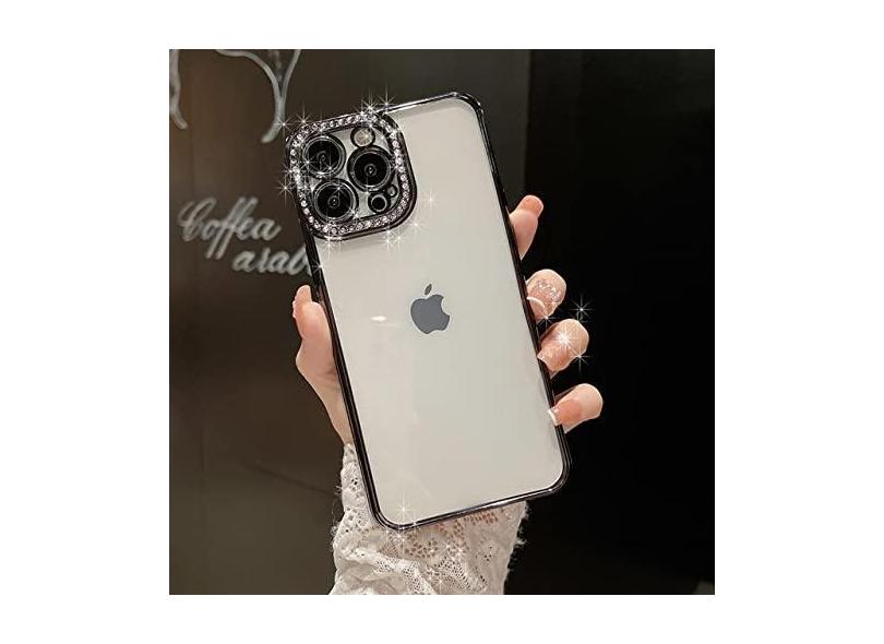 Capa Diamond para iPhone 13 Pro Max 12 11 Pro Xs Max Xr 7 8 14 Plus Electroplate Silicone Transparente Soft Back Cover, Preto, Para iPhone XR