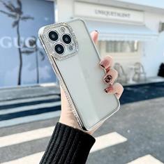 Capa Diamond para iPhone 13 Pro Max 12 11 Pro Xs Max Xr 7 8 14 Plus Electroplate Silicone Transparente Soft Back Cover, Silver, Para iPhone SE 2020