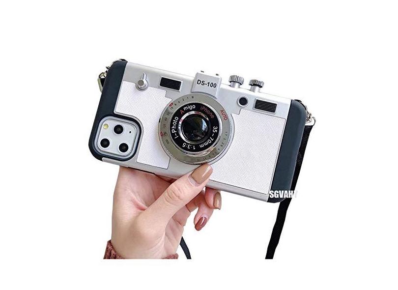 Capa exclusiva compatível com iPhone 12 Pro, design divertido de câmera 3D Emily em Paris, capa traseira de policarbonato rígido + amortecedor de silicone macio com cordão longo à prova de choque (, iPhone 12 Pro)
