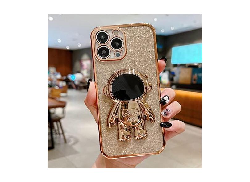 Capa Galvanizada Astronauta para iPhone 11 12 13 14 Pro Max XS Max X XR 14 Plus 13 Pro Capa Soft Glitter Kickstand, T2, para iPhone 14Pro